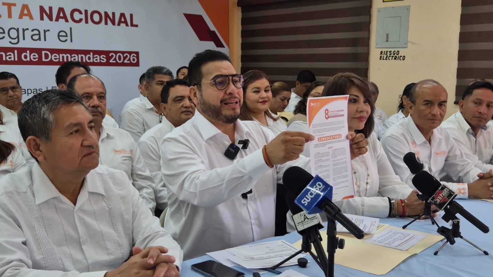 En ese sentido, en conferencia de prensa, Oved Balderas Tovilla, dio a conocer este trabajo para conocer las necesidades del gremio, por lo que informó que el Sindicato Nacional de Trabajadores de la Educación (SNTE) ha emitido una convocatoria para la Octava Consulta Nacional para integrar el Pliego Nacional de Demandas 2026. Esta consulta tiene como objetivo conocer las demandas y necesidades de las agremiadas y los agremiados del SNTE en materia de salario, condiciones laborales, prestaciones económicas, profesionales y sociales.