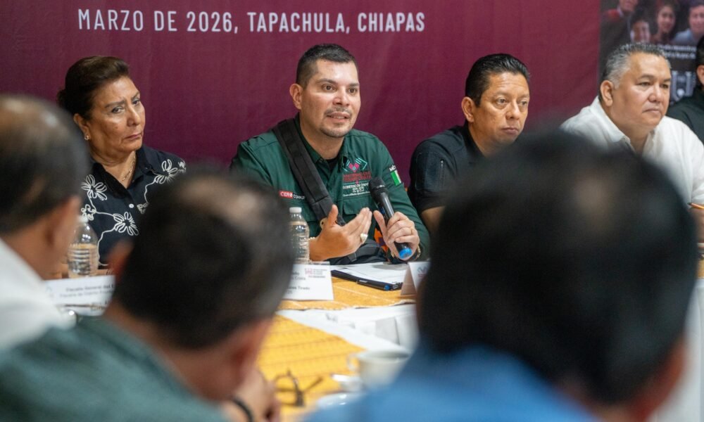 Suceso Chiapas Tapachula, Chiapas; 5 de marzo de 2026.- El titular de la Secretaría de Seguridad del Pueblo (SSP), Óscar Alberto Aparicio Avendaño, acompañado del fiscal...