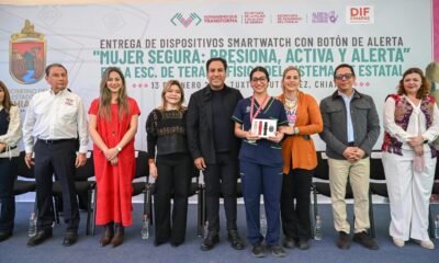 Suceso Chiapas El gobernador Eduardo Ramírez Aguilar encabezó la entrega de dispositivos smartwatch con botón de alerta, enlazados al C5, como parte del programa Mujer Segura:...