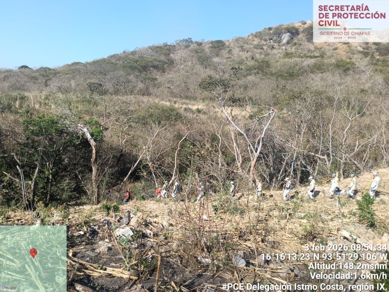 En este sentido protección Civil de Chiapas, ha dado a conocer que se ha logrado un 90% de control y un 75% de liquidación del incendio, mencionando que un total de 240 elementos de los tres órdenes de gobierno están trabajando en el lugar, realizando acciones de combate directo en frentes activos, monitoreo preventivo y recorridos de vigilancia para evitar reactivaciones.