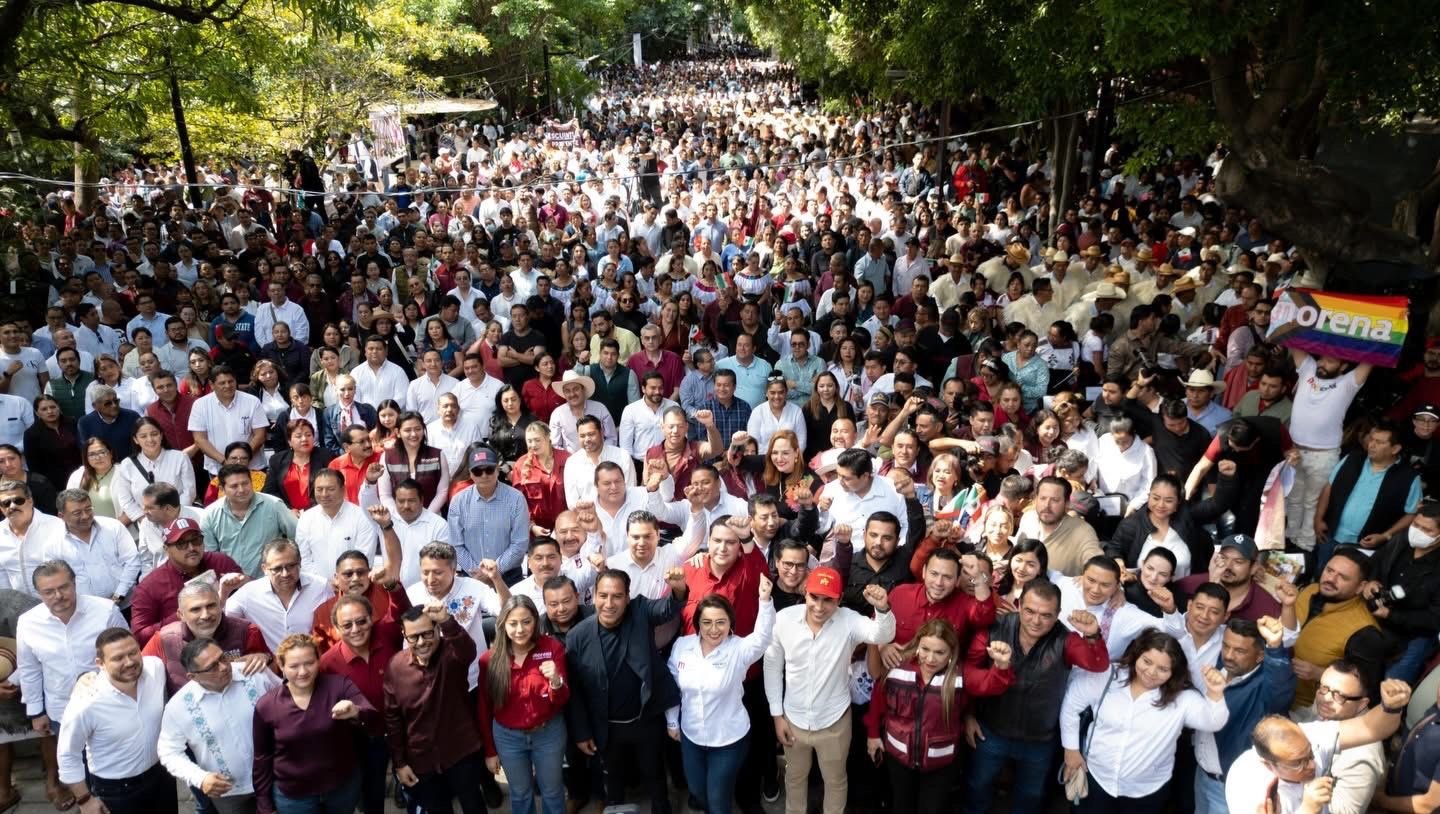 Acompañado por el presidente del Comité Ejecutivo Estatal de Morena en Chiapas, Carlos Molina Velasco; la secretaria de Mujeres del Comité Ejecutivo Nacional de Morena, Adriana Grajales Gómez; la presidenta de la Mesa Directiva del Congreso del Estado, Alejandra Gómez Mendoza; así como dirigentes de los partidos políticos que integran la coalición Sigamos Haciendo Historia en Chiapas, el mandatario sostuvo que en Chiapas quienes forman parte de la Cuarta Transformación comparten la solidaridad, los valores y el amor profundo por la patria, sin embargo, advirtió que a nivel nacional existen actores que quieren ver el movimiento confrontado, por lo que convocó a mantener la unidad y tener presentes los objetivos comunes.