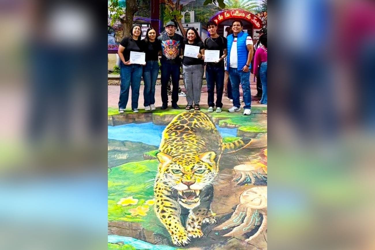 Estudiantes de la Universidad Autónoma de Ciencias y Artes de Chiapas (UNICACH), pintaron “Rugido entre fracturas”, un mural efímero en tercera dimensión frente a la Casa de la Cultura “Gral. Manuel de Mier y Terán”, en la Delegación Terán, de Tuxtla Gutiérrez. La obra retoma al jaguar como símbolo identitario de Chiapas, en convivencia con elementos modernos.