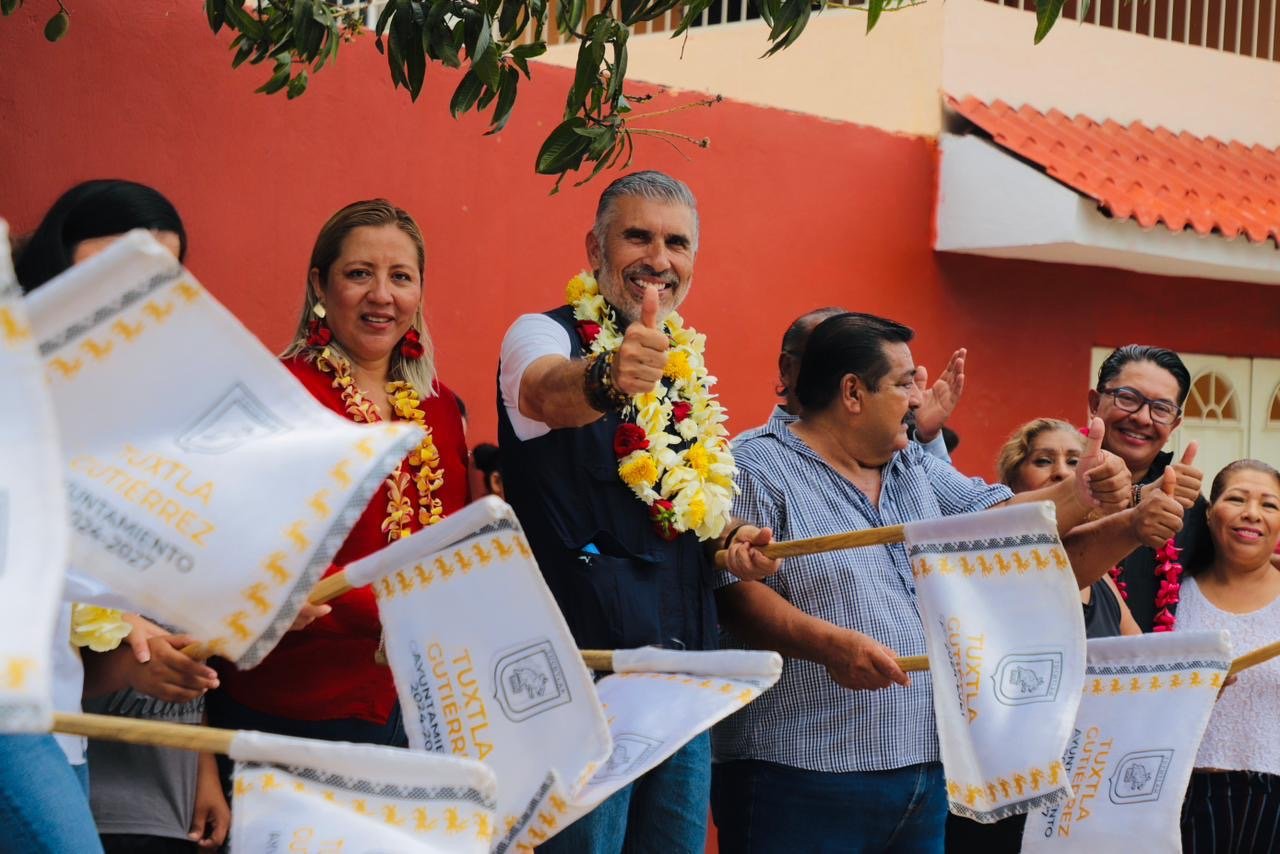 - El presidente puso en marcha los trabajos de más de 200 metros lineales de pavimentación sobre la avenida Chicoasén
