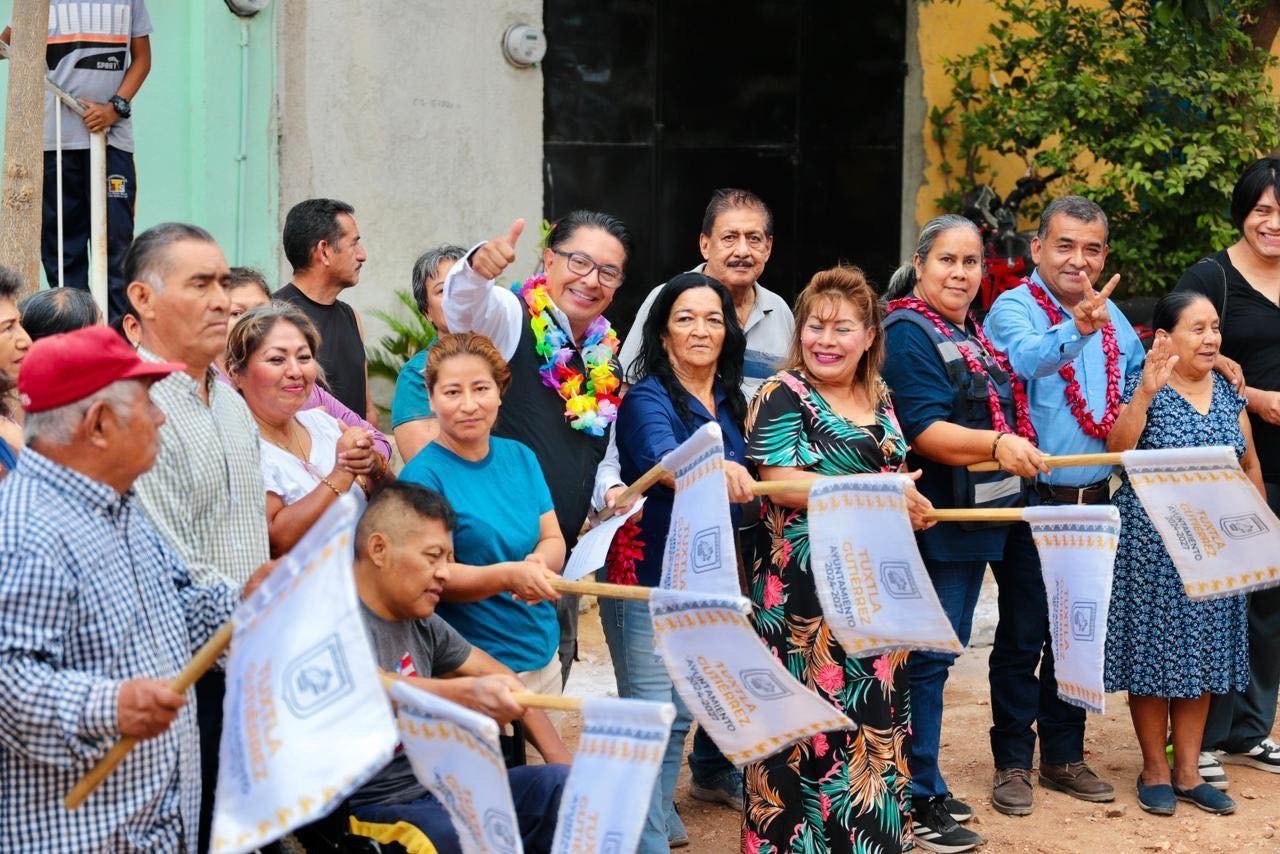 En representación del presidente Angel Torres, el secretario de Desarrollo Social y Educación, Mauricio Astudillo, acompañado de vecinas y vecinos, dio el banderazo de inicio a la pavimentación integral, con concreto hidráulico, iluminación, mejora de servicios y dignificación de la imagen urbana.