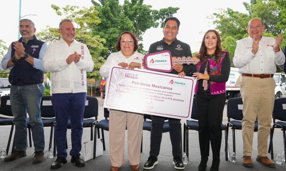 Durante la entrega de donativos de Petróleos Mexicanos (Pemex) para fortalecer la transformación de Chiapas, con un monto superior a los 100 millones de pesos en...