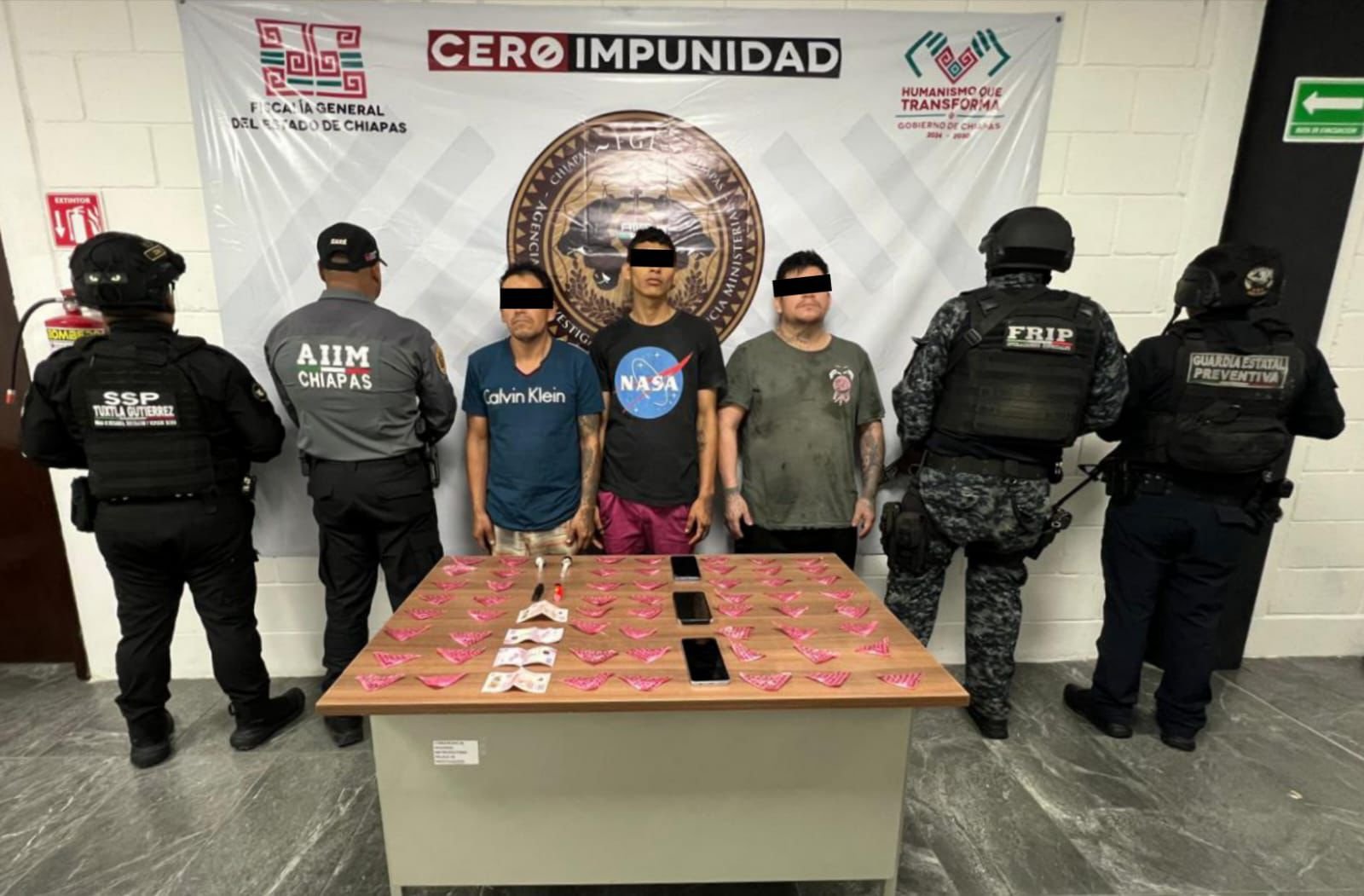 La Secretaría de Seguridad del Pueblo (SSP) a través de la Fuerza de Reacción Inmediata Pakal (FRIP) y Guardia Estatal Preventiva en coordinación con la Agencia de Investigación e Inteligencia Ministerial (AIIM) de la Fiscalía General del Estado (FGE) y Policía Municipal, detuvieron a tres presuntos responsables del delito contra la salud, en el municipio de Tuxtla Gutiérrez.